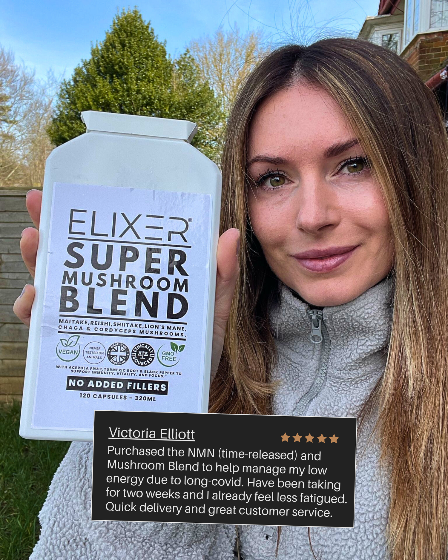 I bought the super mushroom blend and NMN capsules a while ago now and I must say I’m really impressed with the results. Even after just a few weeks using the products I now feel like I have much more energy, I wake up feeling refreshed, my brain fog has been lifted. Top quality products, I love the fact they are naturally sourced! They were delivered super quick too, thanks!